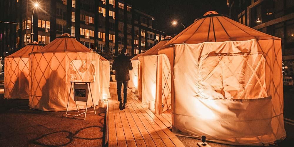 Rainier Outdoor has extraordinary capabilities that allow us to create fun custom solutions such as our dining yurts. We are beyond excited to be involved in The Yurt Village project in collaboration with American Express and Resy. Our team worked tirelessly to build custom-designed structures that allow luxurious outdoor dining during the cold, winter season. You can find our dining yurts at 15 different independent restaurant locations across the country. We interviewed a few members of our engineering team to learn more about their experience with this project. Our engineering team stated, “It’s incredible to be involved in a project that has a large impact on keeping small businesses and restaurants open during this time.” Here is a look into the process.